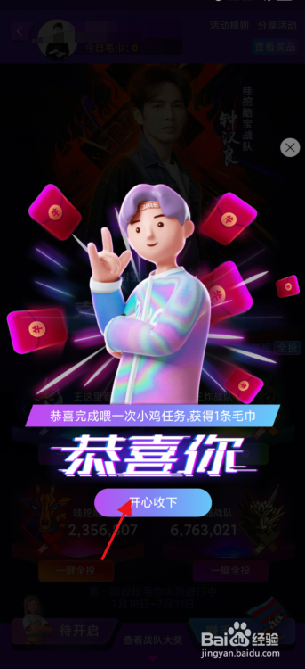 2.进入活动后在上方就会有今日的毛巾数目,可以直接投票给各个战队。