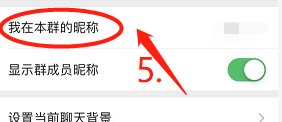 进入群聊设置页面,在该页面中点击【我在本群的昵称】