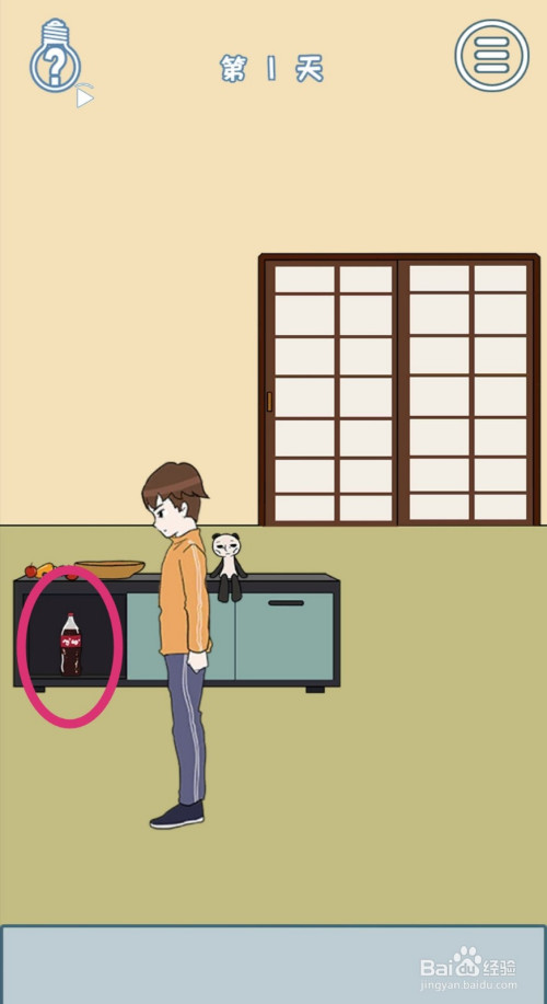 拖动柜子里的可乐给男本家儿喝,男本家儿喝下可乐,游戏方针就达到了,本关游戏也就顺遂过关了。