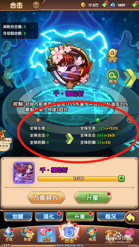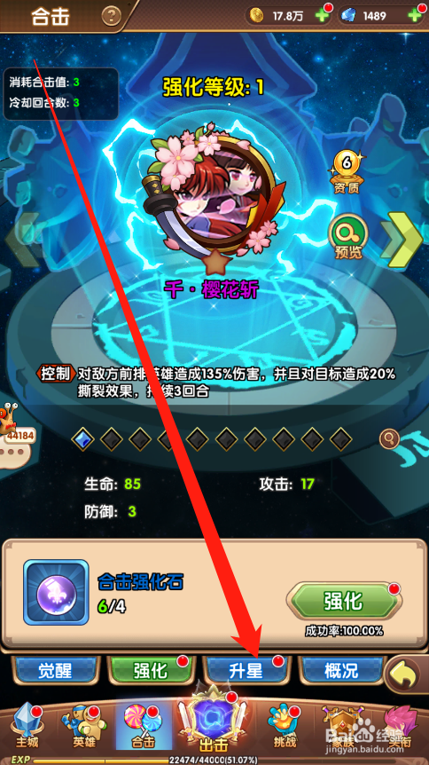 工具/原料漫斗纪元方式/步骤1点击进入游戏2点击合击按钮,进入合击技术3点击想要升星的合击技术4点击升星按钮,进入升星页面5可以看到技术当前的属性,以及升星后的属性6点击升星按钮,就可以当作功的晋升合击技术星级