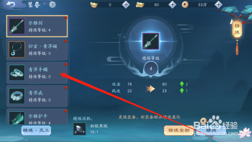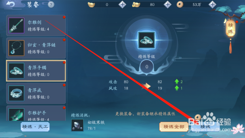 可以看到装备的当前属性,以及精辟后的属性