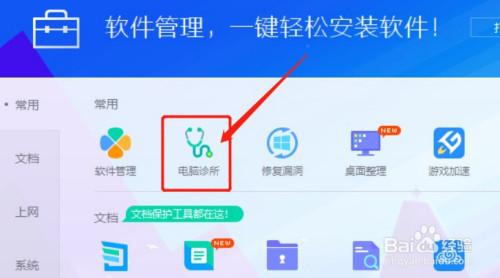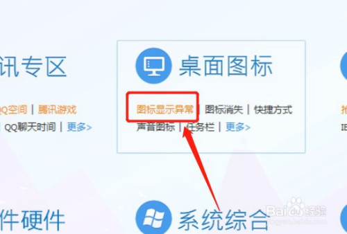 进入【电脑诊所】后,找到【桌面图标】下面的【图标显示异常】,然后点击进去