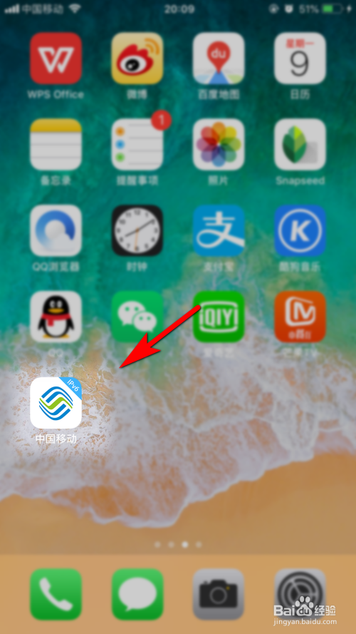先在手机上找到中国移动APP,没有的伴侣可以下载一个中国移动APP。
