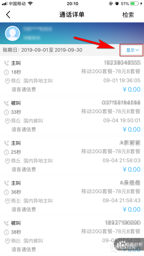 进入之后就可以查看通话具体记实,右上方还可以点击‘显示’可以选择分歧时候去查看移动通话具体记实。但愿能帮忙到您们。