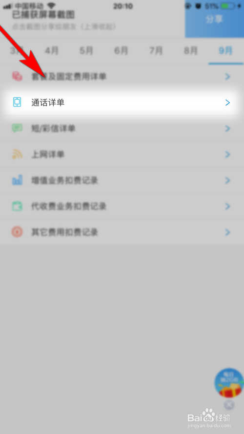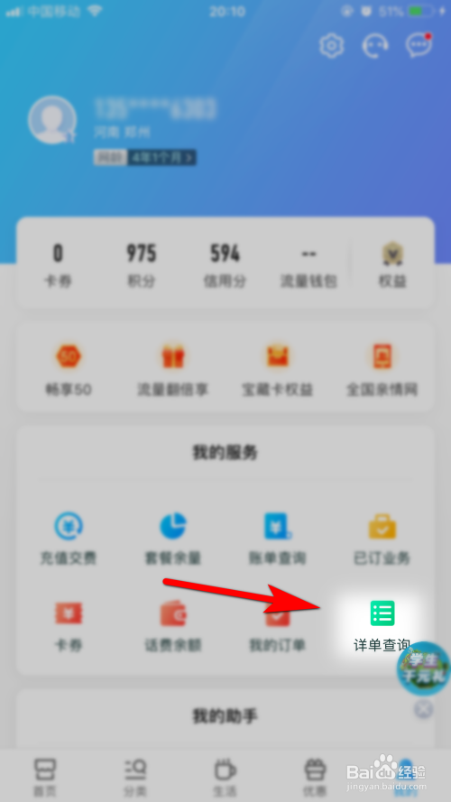 点击右下角我的,然后找到‘详单查询’然后点击进入。