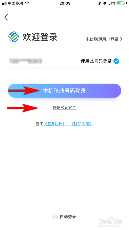 打开APP,这里点击登录体例是本机登录或者选择信息验证码登录均可。
