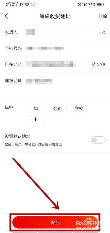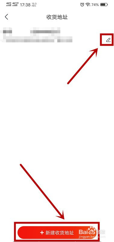 5.点击“点窜”按钮点窜收货地址,点击“新建”按钮增添收货地址;