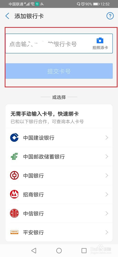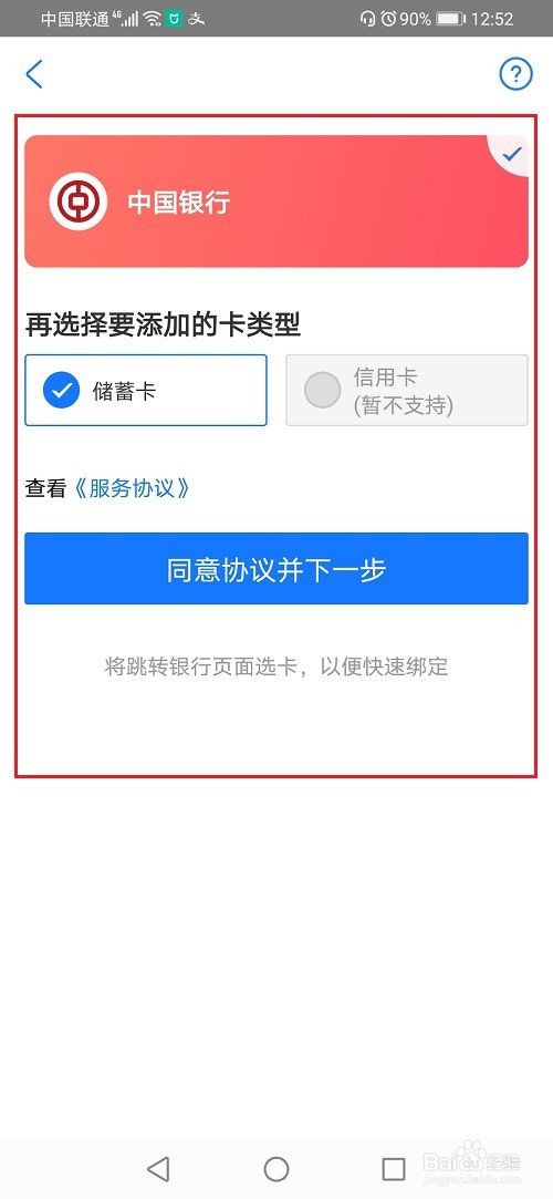 第五步我们也可以经由过程快捷体例绑定银行卡,绑定的银行卡是不需要开通网银的