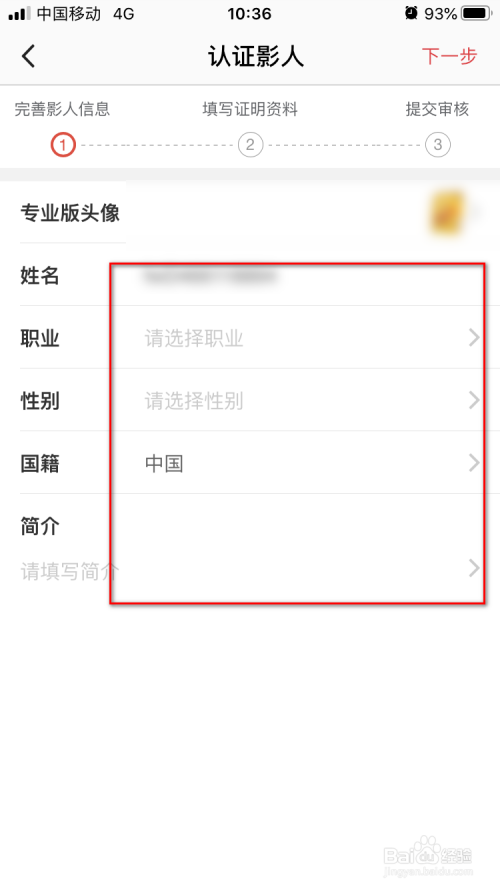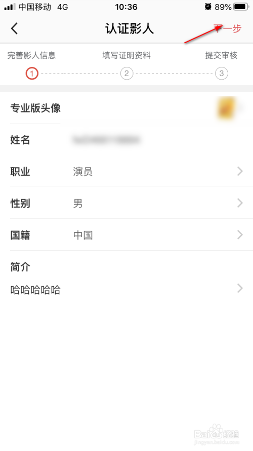 4.然后,我们看到,需要输入姓名,职业,简介等。