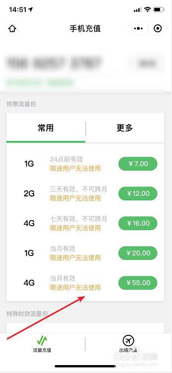 5、选择【流量套餐】