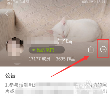圈子详情界面,点击右上角三个小点。如下图所示: