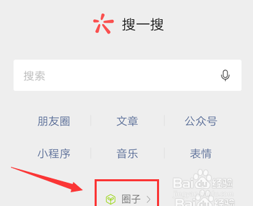 搜一搜界面,点击“圈子”。如下图所示: