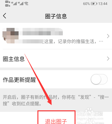 圈子信息界面,点击下方“退出圈子”即可。如下图所示: