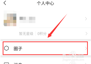 小我中间界面,点击列表中“圈子”。如下图所示: