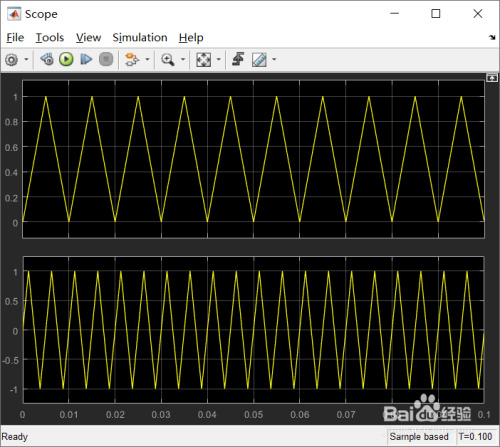点击运行今后在示波器中可以看到成果如下图所示