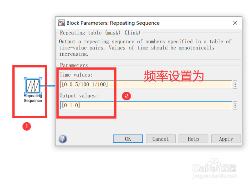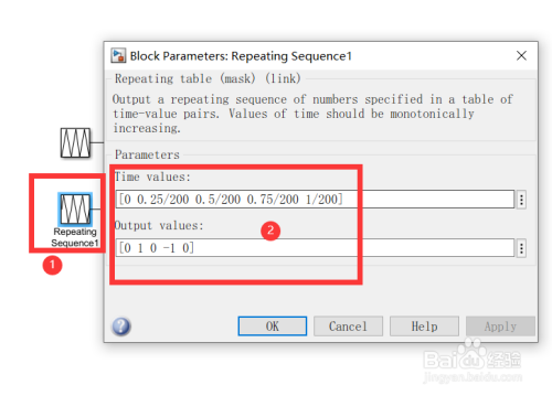 设置“Repeating Sequence”模块的参数