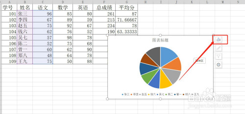 全班语文成就的百分比圆饼图表就做好了