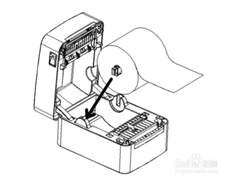 拉出部门纸卷穿过导纸架,依纸张宽度大小收合导纸架以固定纸张两侧。