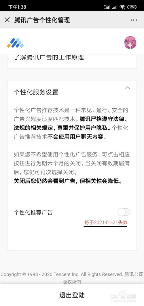 - 封闭个性化保举告白只能持续半年时候,到期后需要再次反复上述操作封闭个性化保举告白。