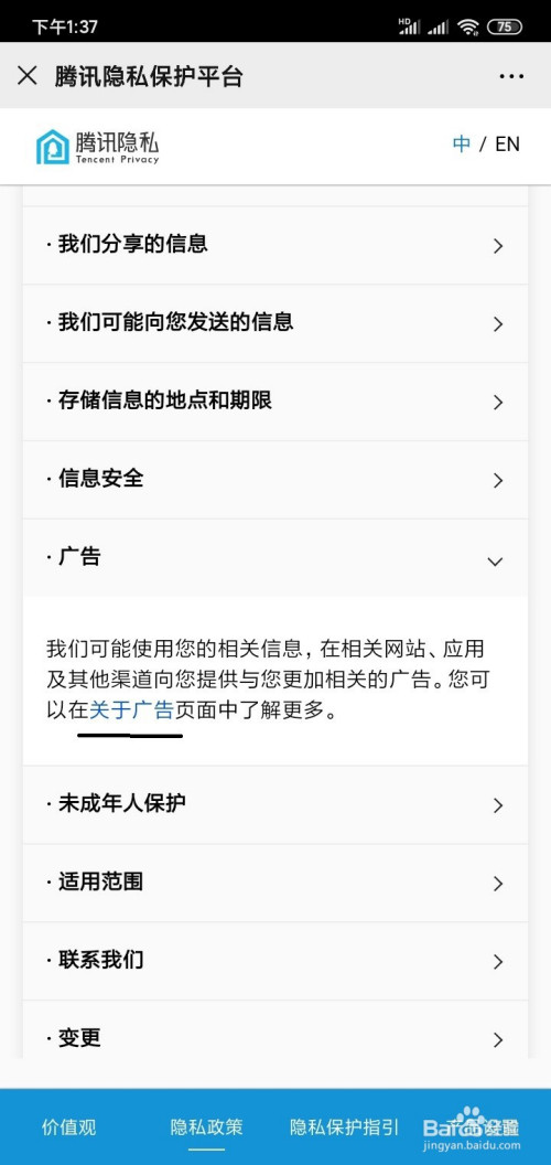 进入腾讯隐私庇护平台页面,找到下方的黑体字“告白”并点击,点击鄙人拉栏中的蓝字“关于告白”。