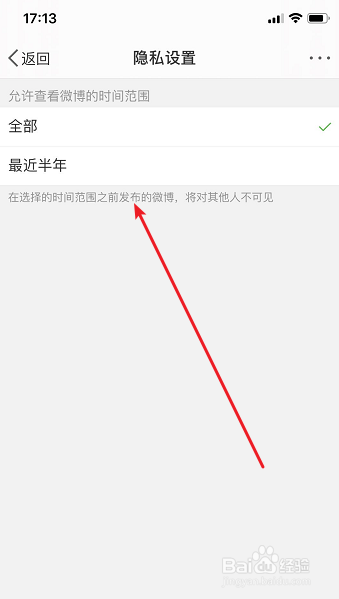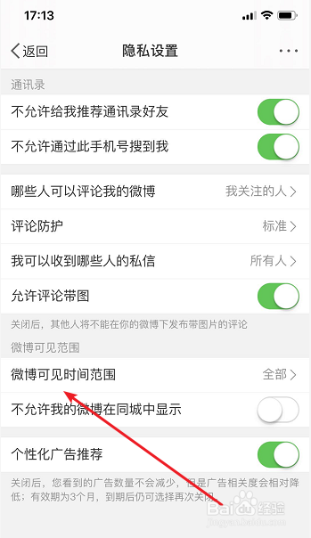 4、点击【微博可见时候规模】