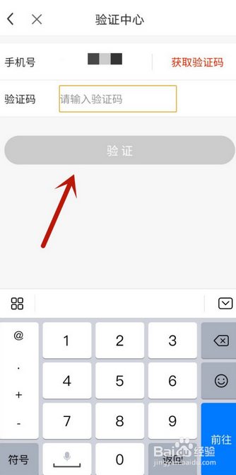 然后在里面输入手机验证码,点击【验证】按钮