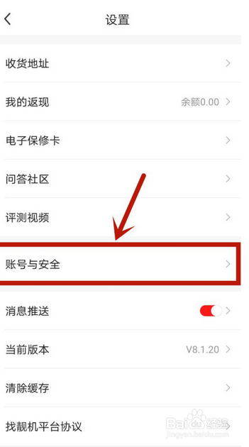 然后进入设置界面,点击【账号与平安】选项