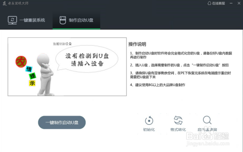 首先,我们把筹办好的U盘插入电脑USB接口,打开老友装机巨匠选择建造启动U盘。