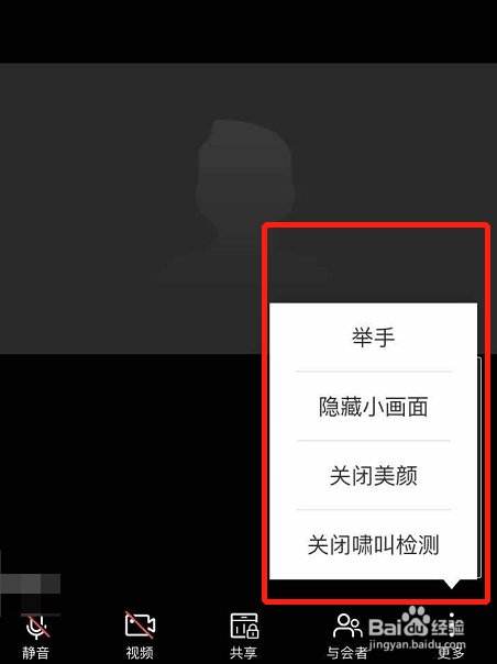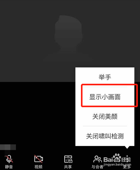 进入会议之后,可以看见下图所示的位置会有一个小屏幕。