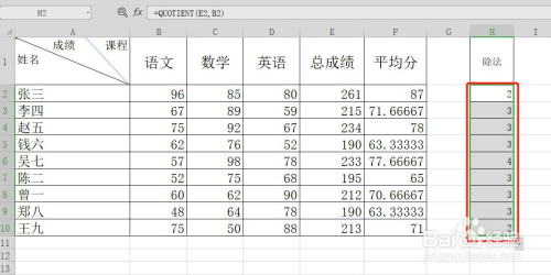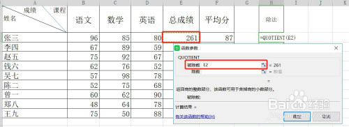 在选择函数列内外面选择:QUOTIENT