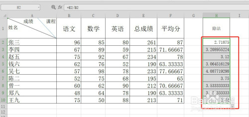 直接在单位格输入:=E2/B2