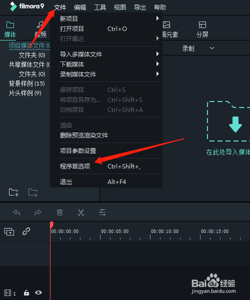 点击上方的文件弹出菜单,然后点击程序首选项。