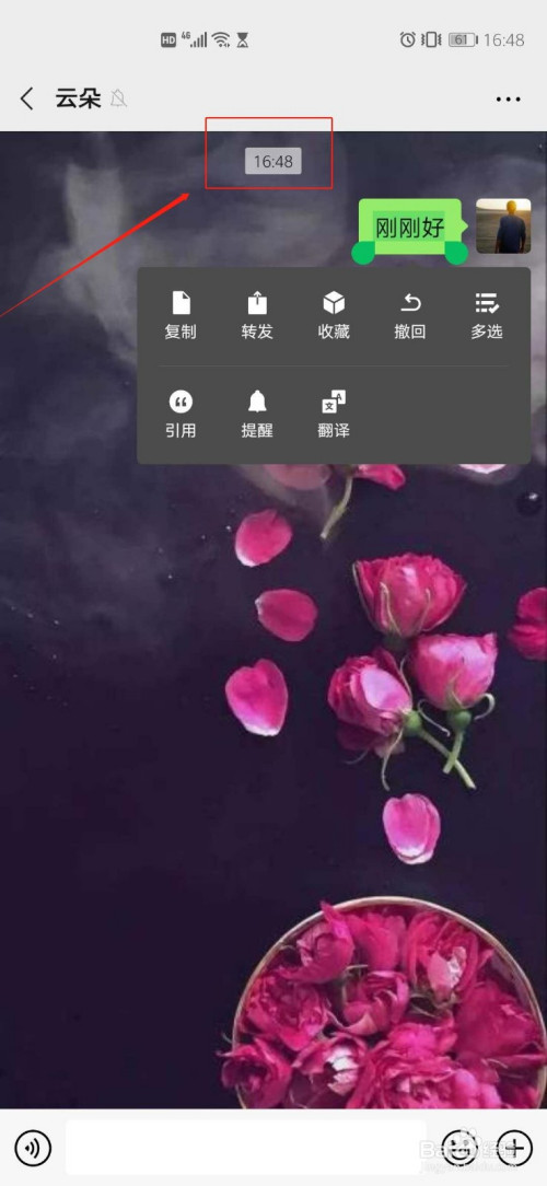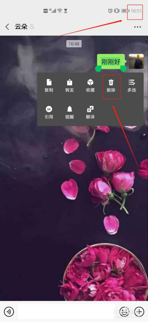 (两分钟后)长按适才发送的微信动静,这时变为删除功能。