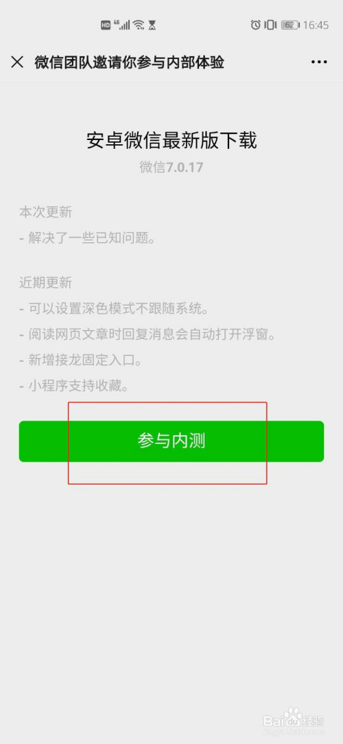 进入关于微信,下载微信7.0.17版本。
