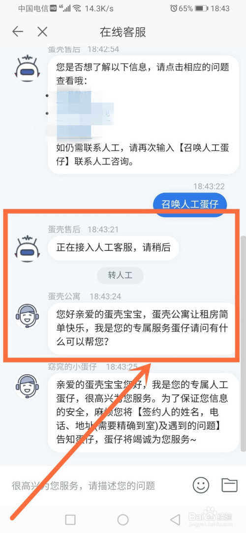 - 蛋壳公寓客服转人工,是需要输入两次呼唤人工蛋仔,才能当作功接入人工的哦