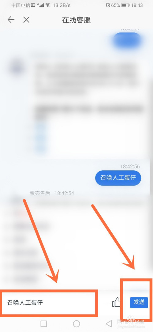进入在线客服对话界面后,输入【呼唤人工蛋仔】,并点击【发送】进入。如下图所示