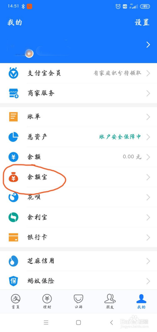 点击“我的”进入我的设置页面,可以看到“余额宝”图标;