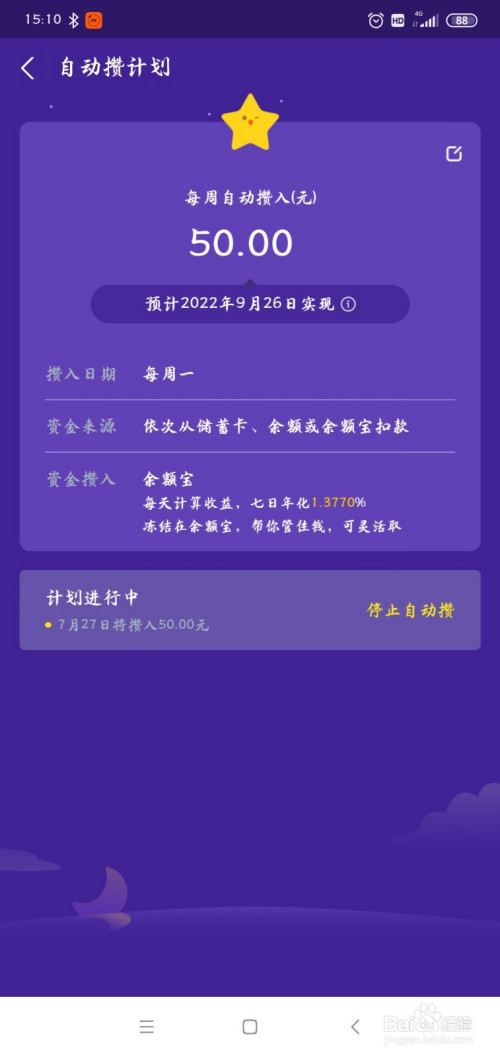 可以设置主动攒钱打算,好比每周攒入50元,每周一攒入,攒入来历是余额宝,这样从设置之日起就可以主动进行攒钱了;