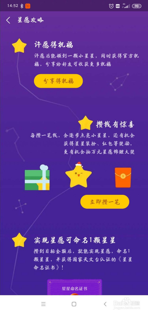 也可以查看攒钱攻略,提前攒钱等等,完当作之后还可以定名一颗星星的名称!