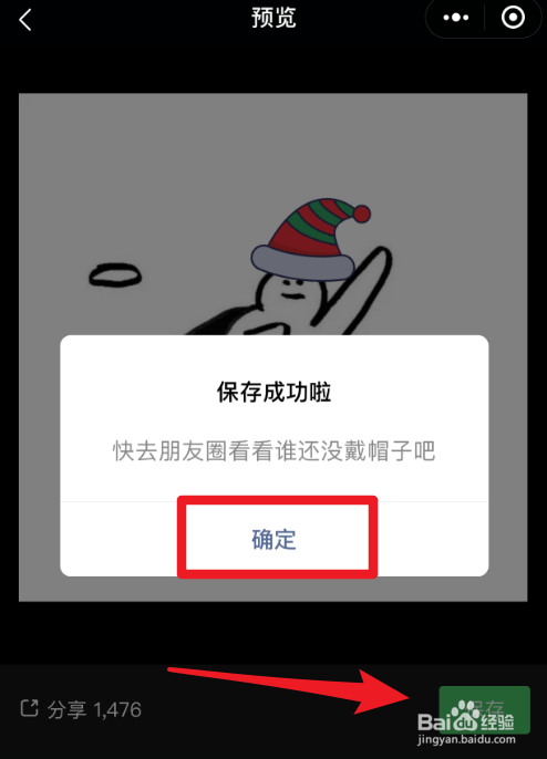 建造完当作后,点击页面右上角处的【保留】按钮,接着在弹出的的保留当作功窗口点击【确定】,即可在我们的手机相册中找到;我们只需将保留的头像替代原有的微信头像,微信圣诞帽头像就搞定了