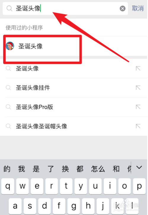 在搜索框中输入【圣诞头像】进行搜素,鄙人方的搜刮成果中点击【圣诞头像】小程序,如图所示