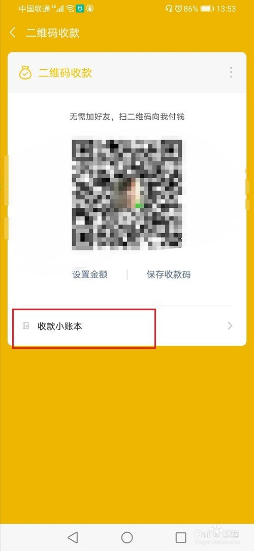 第二步进去收付条目之后,点击二维码收条目,选择收条目小账本