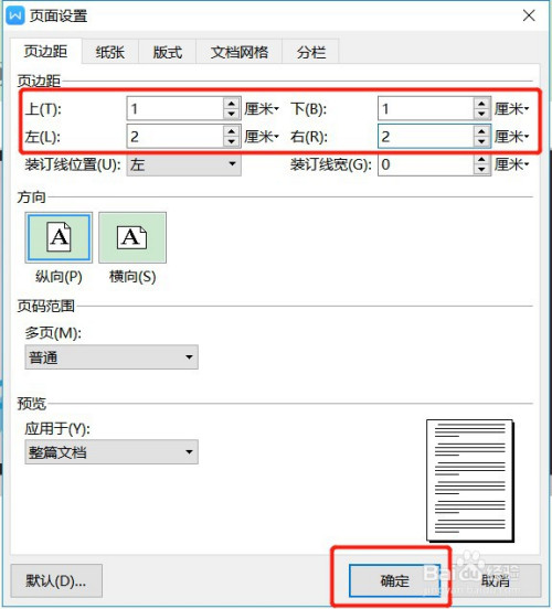 在上下摆布四个输入框里面设置完页边距后,点击下面的【确定】