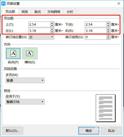 同样有上下摆布四个输入框设置页边距