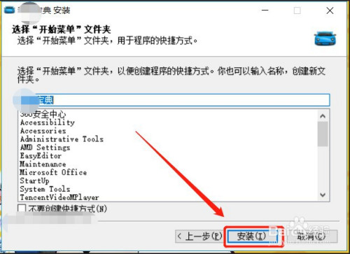 在选择“开始菜单”文件夹页面,点击【安装】