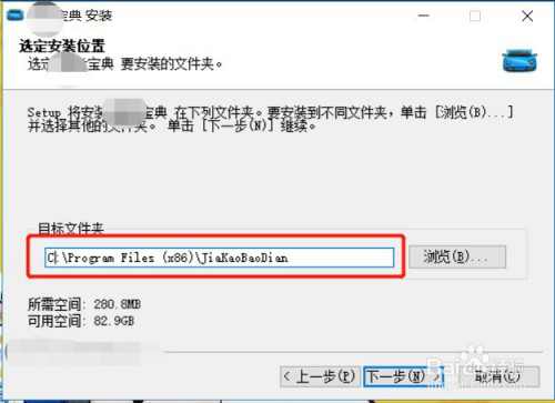 在选的安装位置页面,方针文件夹默认是C盘
