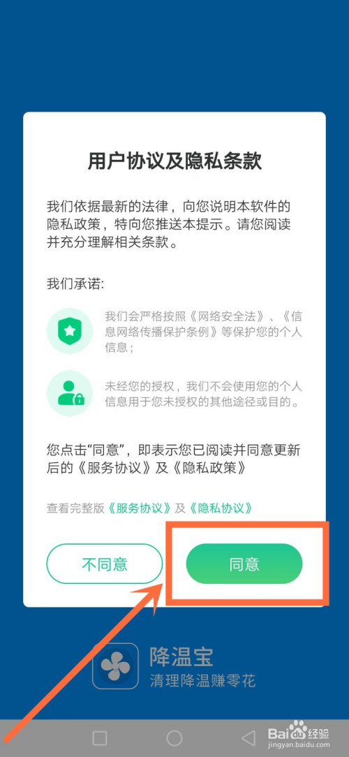 进入隐私条条目界面后,点击【赞成】的选项进入。如下图所示