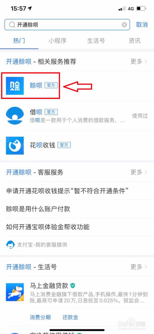 2)此时在输入框下方就会呈现开通赊呗点击进入
