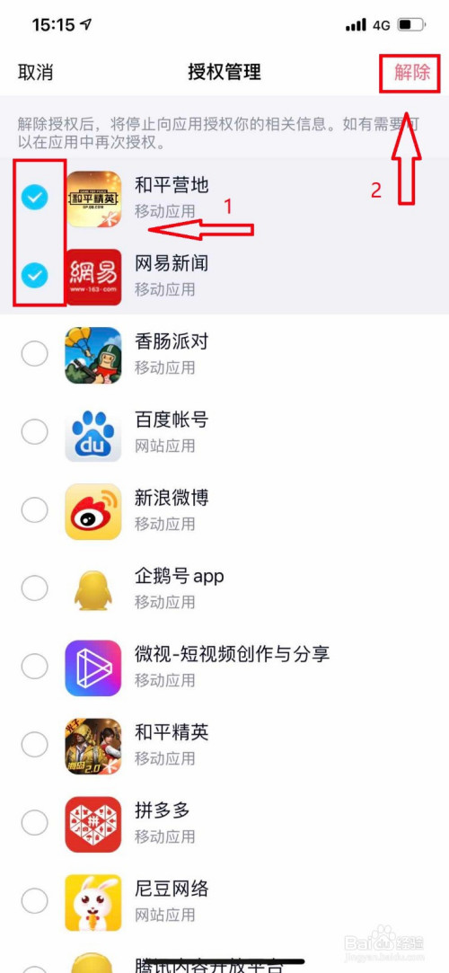 2)然后点击右上角的解除。此时授权的应用就会删除了