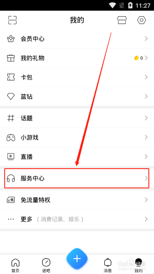 3、下拉页面,找到“办事中间”;点击进入